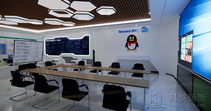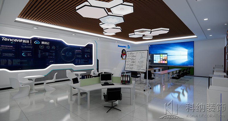 設(shè)計(jì)理念:創(chuàng)客中心是創(chuàng)客教育當(dāng)中一個(gè)重要內(nèi)容,用富有科技感和視覺沖擊力的教室場(chǎng)景,搭配創(chuàng)客活動(dòng)的教具套件設(shè)備,能夠更好的激發(fā)學(xué)生的創(chuàng)造力和學(xué)習(xí)興趣!這次是科技學(xué)院校園內(nèi)騰訊云創(chuàng)客中心設(shè)計(jì)項(xiàng)目,整體富有科技感的線條,營造一種極致的沉浸式體驗(yàn),設(shè)計(jì)師在造型上加強(qiáng)流線型的曲面屬性使之產(chǎn)生的流動(dòng)性引導(dǎo)了整個(gè)視覺路線。走廊兩側(cè)充分利用空間尺度,采用白色墻面做背景LED條形燈模擬芯片線路,矩陣元素?zé)òl(fā)出時(shí)尚動(dòng)感的光,不同角度的直線構(gòu)成簡單的空間關(guān)系,構(gòu)建簡潔大氣的視覺印象,營造出極致的空間體驗(yàn)。